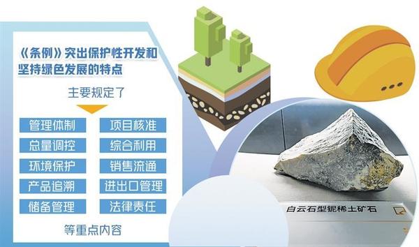 《稀土管理?xiàng)l例》(以下簡(jiǎn)稱《條例》)日前公布,自2024年10月1日起施行?!稐l例》明確,稀土資源屬于國家所有,國家依法加強(qiáng)對(duì)稀土資源的保護(hù),對(duì)稀土資源實(shí)行保護(hù)性開采。同時(shí),鼓勵(lì)和支持稀土產(chǎn)業(yè)新技術(shù)、新工藝、新產(chǎn)品、新材料、新裝備的研發(fā)和應(yīng)用,持續(xù)提升稀土資源開發(fā)利用水平,推動(dòng)稀土產(chǎn)業(yè)高端化、智能化、綠色化發(fā)展。專家認(rèn)為,《條例》首次以行政立法形式規(guī)范稀土資源的開發(fā)利用,主要規(guī)定了管理體制、項(xiàng)目核準(zhǔn)、總量調(diào)控、綜合利用、環(huán)境保護(hù)、銷售流通、產(chǎn)品追溯、進(jìn)出口管理、儲(chǔ)備管理、法律責(zé)任等重點(diǎn)內(nèi)容,突出了保護(hù)性開發(fā)和堅(jiān)持綠色發(fā)展的特點(diǎn),對(duì)推動(dòng)稀土產(chǎn)業(yè)高質(zhì)量發(fā)展具有重大意義。規(guī)范稀土資源開發(fā)利用稀土是現(xiàn)代工業(yè)中不可或缺的重要元素和關(guān)鍵戰(zhàn)略資源。中國有色金屬工業(yè)協(xié)會(huì)黨委書記、會(huì)長(zhǎng)葛紅林表示,稀土被譽(yù)為“工業(yè)維生素”,是高新技術(shù)產(chǎn)業(yè)和國防科技工業(yè)的關(guān)鍵原料,是關(guān)系國家安全和國民經(jīng)濟(jì)命脈的戰(zhàn)略資源,對(duì)推動(dòng)新型工業(yè)化發(fā)展具有不可替代性。中國稀土集團(tuán)黨委書記、董事長(zhǎng)敖宏介紹,稀土是改造提升傳統(tǒng)產(chǎn)業(yè)、發(fā)展戰(zhàn)略性新興產(chǎn)業(yè)和國防科技工業(yè)不可或缺的關(guān)鍵材料。隨著新能源汽車、風(fēng)力發(fā)電、智能制造等戰(zhàn)略性新興產(chǎn)業(yè)和節(jié)能電機(jī)等傳統(tǒng)產(chǎn)業(yè)改造升級(jí),全球稀土需求快速增加。近年來,我國圍繞稀土行業(yè)準(zhǔn)入標(biāo)準(zhǔn)、行業(yè)整合、環(huán)境保護(hù)等方面出臺(tái)了多項(xiàng)政策措施,產(chǎn)業(yè)發(fā)展良好,帶動(dòng)建立起相對(duì)完整的產(chǎn)業(yè)體系,資源儲(chǔ)量、產(chǎn)量、消費(fèi)量、貿(mào)易量均居世界第一位,并持續(xù)加強(qiáng)稀土資源保護(hù)開發(fā)和合理利用,為科技進(jìn)步和經(jīng)濟(jì)社會(huì)發(fā)展作出了突出貢獻(xiàn)。瞄準(zhǔn)新一輪科技革命和產(chǎn)業(yè)變革方向,我國加快稀土供給側(cè)結(jié)構(gòu)性改革,不斷開辟發(fā)展新領(lǐng)域新賽道、塑造發(fā)展新動(dòng)能新優(yōu)勢(shì),產(chǎn)業(yè)鏈不斷完善,產(chǎn)業(yè)規(guī)模不斷擴(kuò)大,產(chǎn)品品種不斷豐富,產(chǎn)品質(zhì)量不斷提高,市場(chǎng)規(guī)模不斷擴(kuò)大,國際影響力持續(xù)提升。但稀土管理仍存在一些突出問題,包括覆蓋全產(chǎn)業(yè)鏈的管理職責(zé)、監(jiān)管措施有待完善,產(chǎn)業(yè)創(chuàng)新能力和綠色化智能化水平亟需提高,行業(yè)秩序需要進(jìn)一步規(guī)范,整治非法開采或非法冶煉分離、無指標(biāo)或超指標(biāo)生產(chǎn)、買賣非法稀土產(chǎn)品等違法行為的手段不足、處罰力度不夠。隨著行業(yè)的不斷發(fā)展,產(chǎn)業(yè)鏈條的持續(xù)延伸,稀土產(chǎn)業(yè)缺少綜合性法律法規(guī)的問題日益凸顯,難以滿足行業(yè)高質(zhì)量發(fā)展需求。稀土行業(yè)涵蓋開采、冶煉分離、產(chǎn)品流通、二次利用、進(jìn)出口以及儲(chǔ)備等諸多環(huán)節(jié),涉及中央政府多個(gè)管理部門,亟需依法建立分工明確、密切配合的管理體制。葛紅林認(rèn)為,稀土產(chǎn)業(yè)大而不強(qiáng)、全而不精的問題依然存在,在制度保障銜接、資源保護(hù)性開發(fā)、原始基礎(chǔ)創(chuàng)新、行業(yè)秩序規(guī)范等方面仍面臨一些困難和挑戰(zhàn)。“特別是在工藝綠色化、產(chǎn)品高端化、制造智能化方面有待提升,產(chǎn)業(yè)結(jié)構(gòu)要持續(xù)優(yōu)化,產(chǎn)業(yè)秩序需要進(jìn)一步規(guī)范。”敖宏說。推進(jìn)產(chǎn)業(yè)轉(zhuǎn)型升級(jí)包鋼(集團(tuán))公司黨委常委、副總經(jīng)理兼北方稀土黨委書記、董事長(zhǎng)劉培勛認(rèn)為,《條例》為解決制約產(chǎn)業(yè)高質(zhì)量發(fā)展的堵點(diǎn)、難點(diǎn)開出了法治良方。完善了生態(tài)環(huán)境保護(hù)、資源儲(chǔ)備的有關(guān)規(guī)定,形成了更加科學(xué)有效的管理方式,更有利于稀土資源的保護(hù)性開發(fā);明確提出國家鼓勵(lì)科技創(chuàng)新和人才培養(yǎng),支持稀土新產(chǎn)品、新材料、新工藝的研發(fā)和產(chǎn)業(yè)化,更有利于稀土資源的高質(zhì)化利用;建立起從國家到地方再到企業(yè)分層管理、各司其職、各負(fù)其責(zé)的治理體系,并首次對(duì)違法違規(guī)行為設(shè)定處罰標(biāo)準(zhǔn),進(jìn)一步加壓引導(dǎo)行業(yè)秩序整頓,更有利于行業(yè)規(guī)范化管理?!稐l例》致力于促進(jìn)稀土產(chǎn)業(yè)高質(zhì)量發(fā)展。工業(yè)和信息化部原材料工業(yè)司相關(guān)負(fù)責(zé)人解讀,國家對(duì)稀土產(chǎn)業(yè)發(fā)展實(shí)行統(tǒng)一規(guī)劃,并突出科技創(chuàng)新。鼓勵(lì)和支持稀土產(chǎn)業(yè)新技術(shù)、新工藝、新產(chǎn)品、新材料、新裝備的研發(fā)和應(yīng)用。鼓勵(lì)和支持