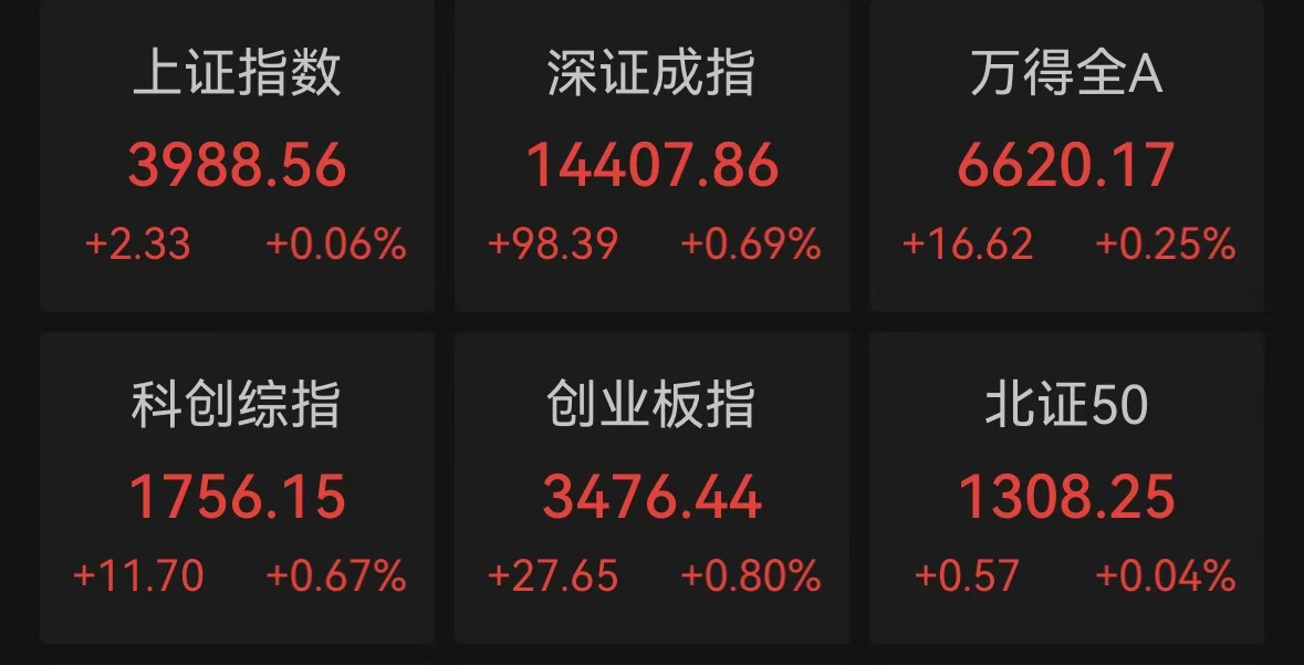 中新網(wǎng)4月13日電(記者 謝藝觀)13日,A股三大股指集體收紅。截至收盤(pán),上證指數(shù)漲0.06%,深證成指漲0.69%,創(chuàng)業(yè)板指漲0.8%。盤(pán)面上,建材、電腦硬件、基本金屬等行業(yè)板塊漲幅居前。
