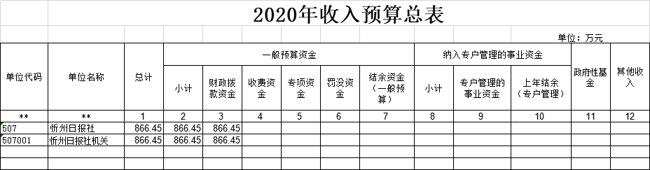 忻州日?qǐng)?bào)社2020年收入預(yù)算866.45萬元,比2019年增加15.62萬元。