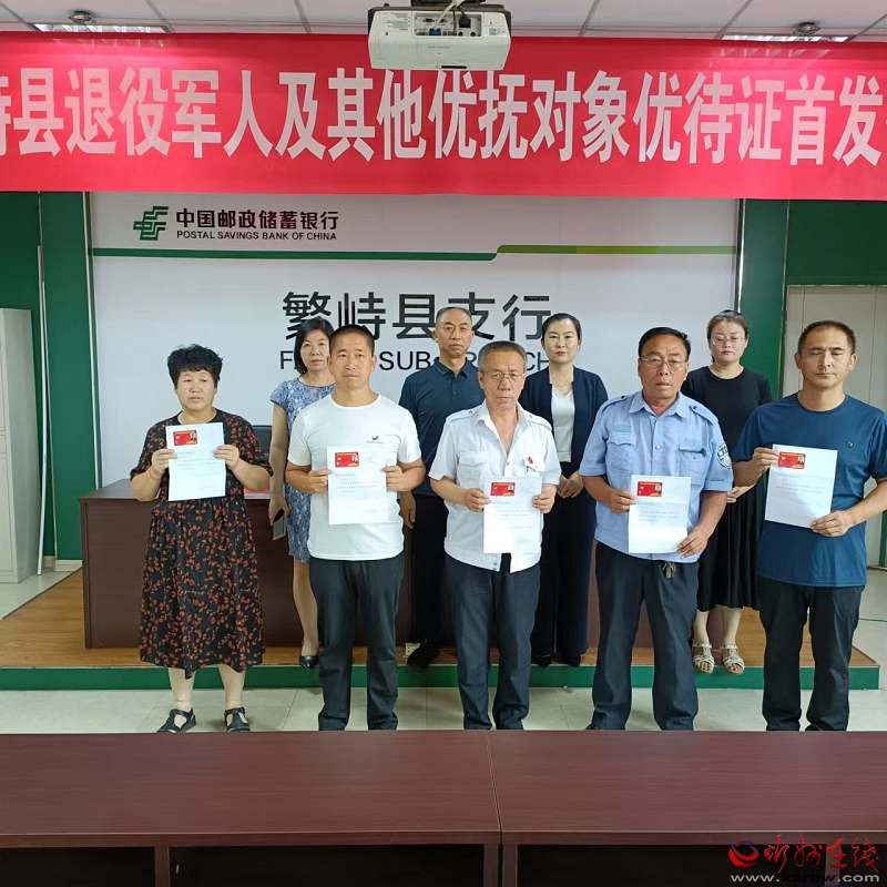 7月19日,繁峙縣退役軍人事務(wù)局與中國郵政儲蓄銀行繁峙縣支行聯(lián)合舉行了繁峙縣退役軍人及其他優(yōu)撫對象優(yōu)待證首發(fā)儀式,現(xiàn)場為5名退役軍人代表發(fā)放了優(yōu)待證,標(biāo)志著繁峙縣退役軍人及其他優(yōu)撫對象優(yōu)待證發(fā)放工作正式開始。縣退役軍人事務(wù)局副局長李萬壽、事務(wù)局優(yōu)撫中心主任降銀鳳、郵儲銀行繁峙支行行長秦媛出席發(fā)放儀式。