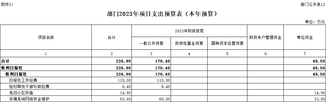 2、部門預(yù)算單位構(gòu)成:忻州日?qǐng)?bào)社是一級(jí)預(yù)算單位,無下屬單位。部門預(yù)算只有一個(gè)單位,即忻州日?qǐng)?bào)社。