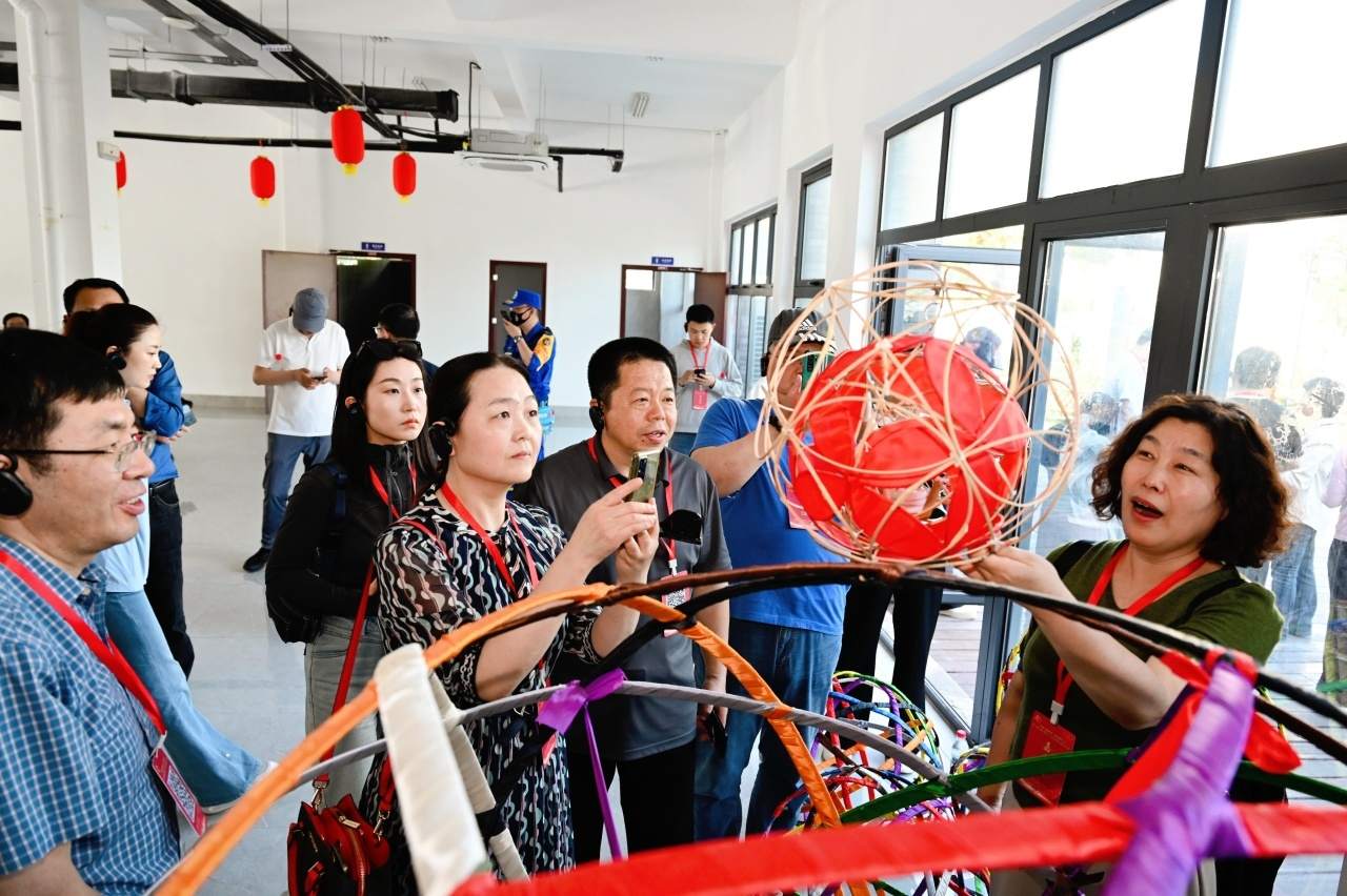 在“滾燈”文化公園,記者團親身感受了一把“潮鄉(xiāng)”的“滾燈”藝術(shù)的魅力?!皾L燈”源自江南一帶的民間節(jié)日慶典,融合了舞蹈、技巧與體育精髓,愛好者展示給記者們的金港村“滾燈”,其制作工藝之考究讓大伙都嘖嘖贊嘆。