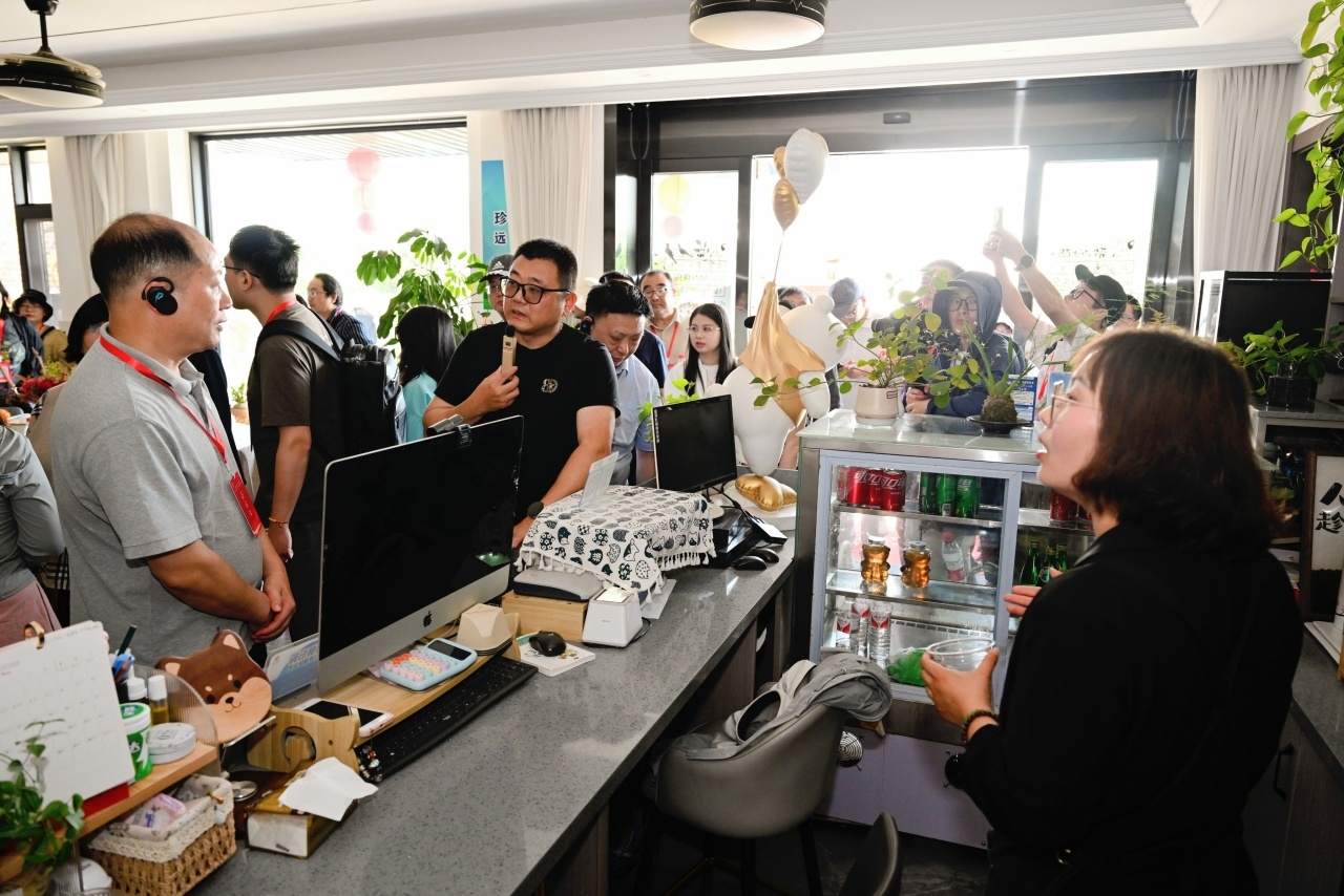 村里蕓溪民宿的“潮趣”營地,讓記者們見識到了“潮鄉(xiāng)”傳統(tǒng)之外時尚、新銳一面。民宿主理人是80后返鄉(xiāng)青年宋曉燕,在“家門口”實現(xiàn)了開民宿的夢想?!笆|溪”背靠浙北最美公路翁金線、面朝錢塘江,如今,有了這“潮趣”營地,就能讓客人們想安靜時要一間房、泡一壺茶;愛熱鬧的,呼朋喚友一起燒烤、露營,共赴“江岸野趣”;或是帶著小朋友來摘野菜、喂小動物,與大自然來一次親密接觸……宋曉燕將“蕓溪”經(jīng)營成了具有鄉(xiāng)村煙火氣、人情味的驛站,讓南來北往的客人們在這里找到了“回家”的感覺。已是“銀宿”級別的“蕓溪”,因為極好的口碑,目前客房訂單已排到“五一”假期。
