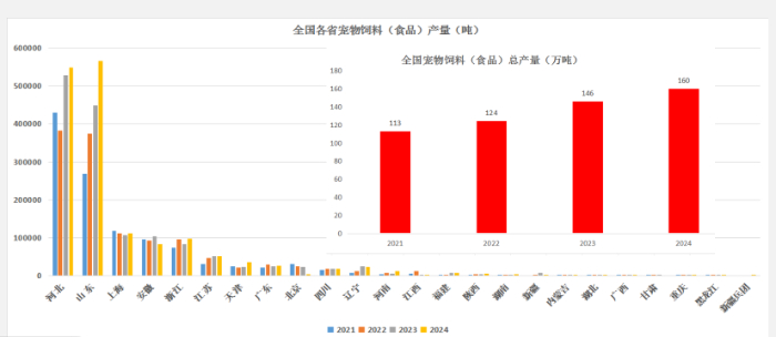 中國(guó)農(nóng)業(yè)科學(xué)院飼料研究所寵物營(yíng)養(yǎng)團(tuán)隊(duì)針對(duì)2021年至2024年全國(guó)各寵物飼料(食品)產(chǎn)量的分析(中國(guó)農(nóng)業(yè)科學(xué)院飼料研究所寵物營(yíng)養(yǎng)團(tuán)隊(duì)供圖)
