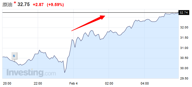 美國原油期貨結(jié)算價報每桶32.28美元,大漲2.40美元,或8%。布蘭特原油期貨結(jié)算價報每桶35.04美元,勁升2.32美元,或7.1%,盤中高見35.11美元。