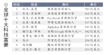 京華時報訊(記者胡笑紅)福布斯10日發(fā)布了第二屆科技行業(yè)百富榜顯示,全球排名前100的科技富豪合并財(cái)富達(dá)到8920億美元,較去年增長6%。中國的馬云、馬化騰躋身榜單前十。