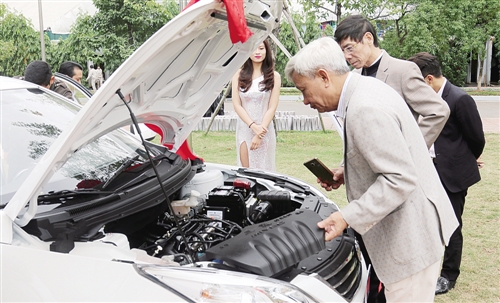 圖為越南客戶在了解東風乘用車。 本報駐河內記者 崔瑋祎攝