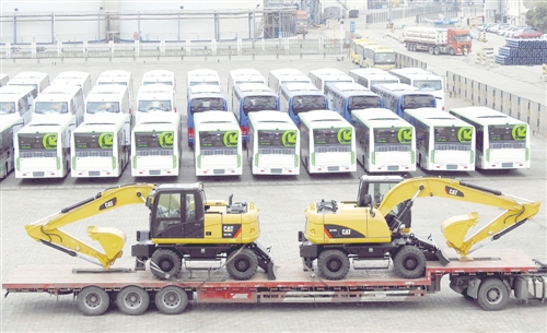 近年來,中國在全球貿易經濟中的地位進一步上升,在世貿組織中的作用持續(xù)增強,以開放姿態(tài)贏得自身經濟貿易體量迅速增長。圖為客車和工程機械設備在江蘇連云港港口碼頭等待裝船。 (新華社發(fā))