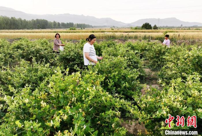 “三夏”大忙時節(jié),呂梁山脈姑射山下,山西省運城市新絳縣澤掌鎮(zhèn)喬溝頭、吳嶺莊、光村等村,千畝金銀花喜獲豐收,花農(nóng)們正采摘搶收。近年來,當(dāng)?shù)匾浴盎ā睘椤懊健保掷m(xù)加大果、藥等產(chǎn)業(yè)發(fā)展,成為鄉(xiāng)村振興“新動力”。