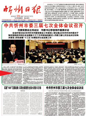 中國共產(chǎn)黨忻州市第三屆委員會第七次全體會議于12月28日在忻州召開。全會聽取討論了《中共忻州市委常委會工作報告》,審議通過了《中共忻州市委關(guān)于制定國民經(jīng)濟和社會發(fā)展第十三個五年規(guī)劃的建議》,研究部署了“十三五”時期經(jīng)濟社會發(fā)展工作。