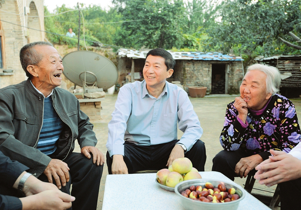 9月19日下午,臨縣林家坪鎮(zhèn)南圪垛村的一個(gè)農(nóng)家小院里,傳出陣陣舒心的笑聲,這是省委書記駱惠寧正在與貧困戶劉玉恩老兩口親切交談,詳細(xì)了解他們家因病致貧的情況,關(guān)切地詢問(wèn)病情和具體困難。駱惠寧要求,要進(jìn)一步深化醫(yī)療衛(wèi)生體制改革,為解決因病致貧提供支撐。(本報(bào)記者 李聯(lián)軍 攝)