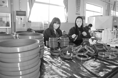 圖為1月21日,原平市泰寶密封有限公司的工人們正在生產(chǎn)加工密封件。該企業(yè)擁有國際先進水平的奧地利無模密封件生產(chǎn)線,年生產(chǎn)能力達1200萬件。產(chǎn)品行銷東南亞各國和全國二十多個省市,廣泛應用于煤炭、石油、冶金、機械、化工、電力、交通運輸?shù)刃袠I(yè)。(褚震 攝)