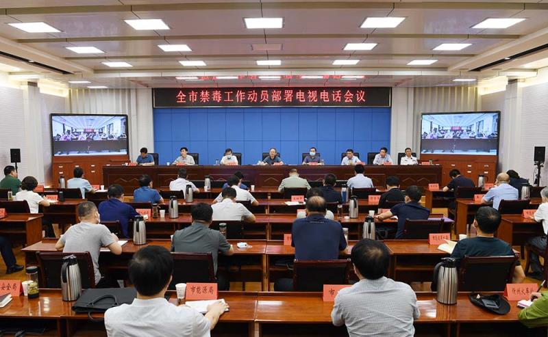 全市禁毒工作動員部署電視電話會議。劉紀森 攝