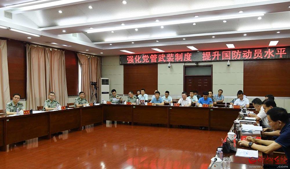 曲君傳達省委議軍會議精神,匯報國防動員和后備力量建設情況。劉紀森 攝