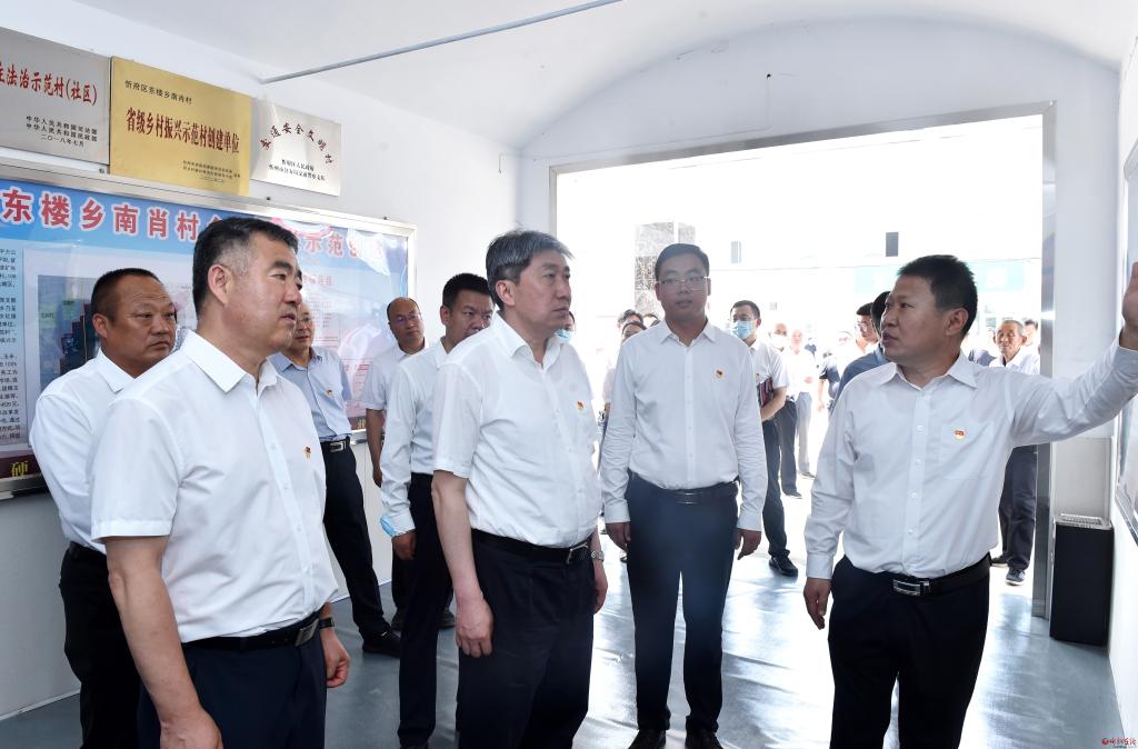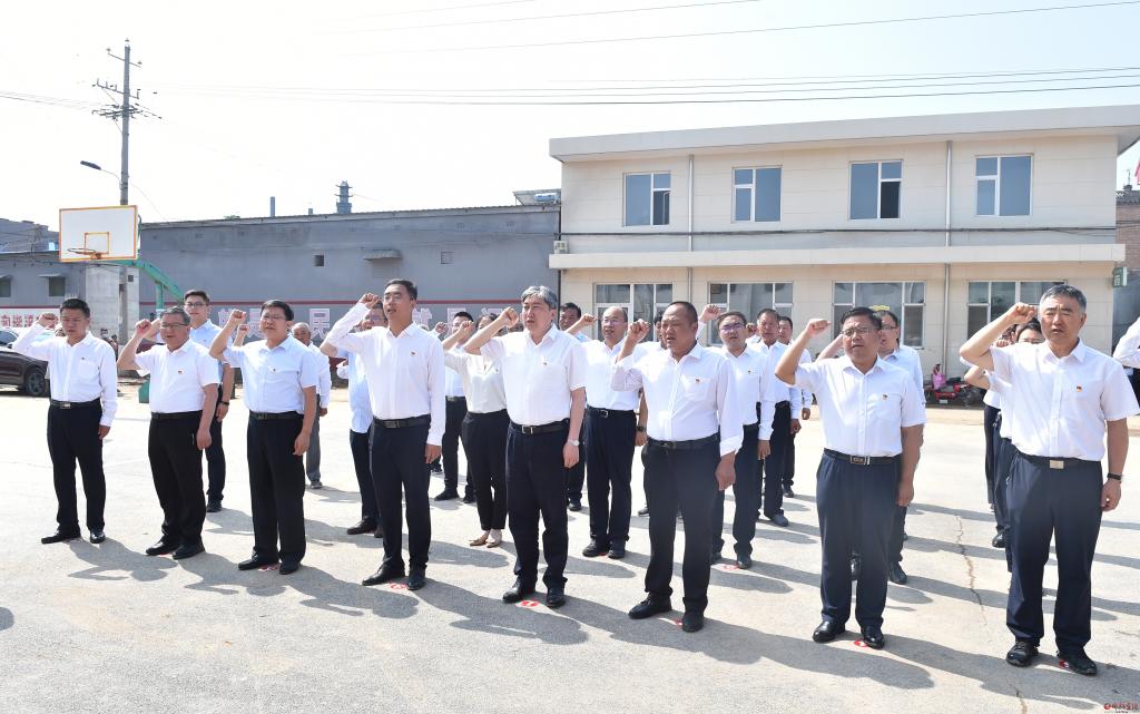 在南肖村。馮曉磊 攝 6月30日,市委書記朱曉東到忻府區(qū)東樓鄉(xiāng)南肖村參加慶祝建黨101周年活動,為基層黨員講黨課,與基層黨員重溫入黨誓詞,看望慰問老黨員和困難黨員,并調(diào)研基層黨建、鄉(xiāng)村振興等工作。他強(qiáng)調(diào),要以習(xí)近平新時代中國特色社會主義思想為指導(dǎo),銘記奮斗歷程,深刻領(lǐng)悟共產(chǎn)黨人的初心使命,準(zhǔn)確把握忻州經(jīng)濟(jì)社會發(fā)展的階段性特征,堅(jiān)決扛牢建設(shè)太忻一體化經(jīng)濟(jì)區(qū)的歷史使命,深入實(shí)施鄉(xiāng)村振興戰(zhàn)略,推動農(nóng)業(yè)農(nóng)村高質(zhì)量發(fā)展。市委常委、秘書長、統(tǒng)戰(zhàn)部部長張文偉,市政協(xié)副主席張文斌參加。 朱曉東與黨員代表重溫了建黨101年的奮斗歷史。他指出,今年是中國共產(chǎn)黨成立101周年。中國共產(chǎn)黨101年的奮斗歷史就是一部踐行初心使命的歷史,就是一部黨與人民心連心、同呼吸、共命運(yùn)的歷史。建黨百年來,我們黨把為中國人民謀幸福、為中華民族謀復(fù)興確立為自己的初心使命。在新的征程上,我們必須堅(jiān)持中國共產(chǎn)黨的堅(jiān)強(qiáng)領(lǐng)導(dǎo),把初心和使命融入全面建設(shè)社會主義現(xiàn)代化國家新征程的偉大實(shí)踐中,充分發(fā)揮好中國特色社會主義制度優(yōu)勢,擔(dān)負(fù)起時代賦予的偉大使命,團(tuán)結(jié)帶領(lǐng)人民群眾不斷為美好生活而奮斗。