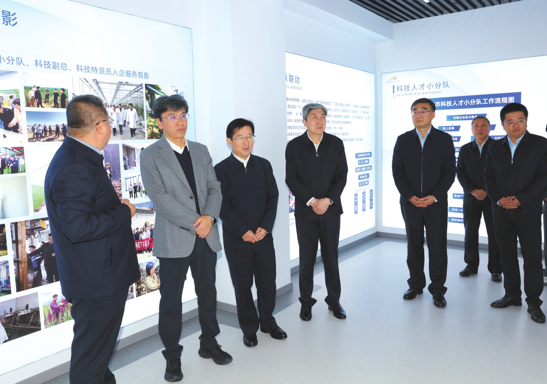 在忻州科創(chuàng)驛站,朱曉東、白培康等一行詳細了解科研創(chuàng)新成果和轉(zhuǎn)化應用情況。忻州科創(chuàng)驛站依托入駐機構(gòu)人才資源,對標忻州全市重點產(chǎn)業(yè),組建科技人才小分隊,與科技副總、科技特派員協(xié)同,打造點、面、網(wǎng)相結(jié)合的創(chuàng)新服務體系,推動科研成果找到轉(zhuǎn)化落地的應用場景,人才得到施展才華的廣闊舞臺。大家對忻州科創(chuàng)驛站因地制宜打破高校成果轉(zhuǎn)化“落地難”與企業(yè)發(fā)展“技術(shù)荒”瓶頸,破解科研應用“人才荒”的實際成效表示肯定。在忻州科創(chuàng)驛站內(nèi),由山西工程技術(shù)學院和太原科技大學組建的山工科技忻州創(chuàng)新研究院、重型機械裝備省部共建協(xié)同創(chuàng)新中心等機構(gòu)的科技成果,與忻州高端鍛造、廢棄資源綜合利用、煤機裝備等產(chǎn)業(yè)發(fā)展和生態(tài)環(huán)保事業(yè)緊密關(guān)聯(lián),大家對科研成果與地方產(chǎn)業(yè)發(fā)展實際的精準嫁接表示欣慰。