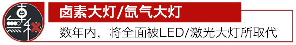 未來數(shù)年內(nèi),汽車鹵素大燈和氙氣大燈也面臨消失的威脅,隨著LED車燈技術(shù)的興起,甚至激光車燈的崛起,或?qū)⒙裨犭瘹獯鬅?,因?yàn)槠錈艄庑Ч?,同時(shí)更節(jié)能。