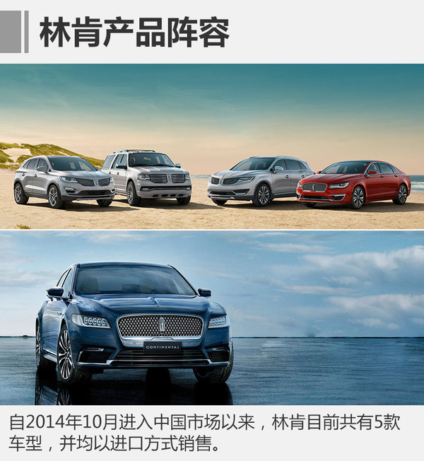 2014年10月,林肯正式進入中國市場,建立獨立經(jīng)銷商網(wǎng)絡,同時帶來的還有兩款布局中型豪華轎車和中型豪華SUV市場的全新車型MKZ和MKC。作為福特旗下唯一的豪華品牌,林肯秉承美式豪華品牌的風格,極力打造不同于BBA式的產品特征。