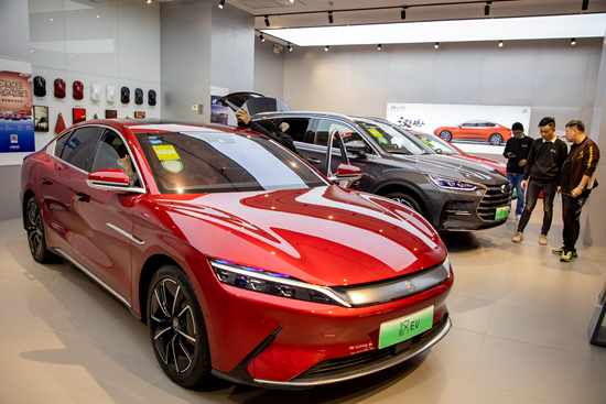 統(tǒng)計數(shù)據(jù)顯示,2021年新能源汽車產(chǎn)銷分別達到354.5萬輛和352.1萬輛,同比增長均為1.6倍。此外,新能源汽車市場占有率提升至13.4%,進一步說明新能源汽車市場已從政策驅(qū)動轉(zhuǎn)向市場拉動。在終端消費日漸活躍的同時,越來越多的自主品牌憑借新能源汽車闖出了一條“銷量上升、品牌向上”的新路子。圖為消費者在上海一家比亞迪店內(nèi)體驗新車。視覺中國供圖