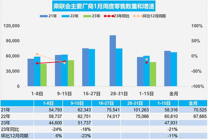 中新網(wǎng)1月18日電 據(jù)乘聯(lián)會公眾號18日消息,1月1-15日,乘用車市場零售71.9萬輛,同比去年下降21%,較上月同期下降11%;全國乘用車廠商批發(fā)65.9萬輛,同比去年下降20%,較上月同期下降11%。
