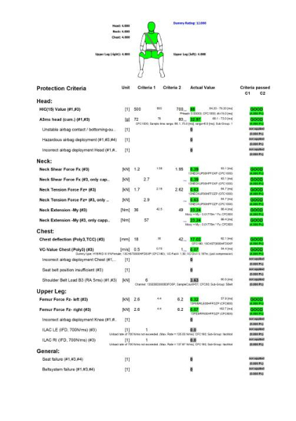 從試驗(yàn)結(jié)果來(lái)看,車(chē)輛潰縮區(qū)吸能狀態(tài)良好,前潰縮區(qū)很好的吸收了臺(tái)車(chē)撞擊后的能量;乘員艙完整且乘員生存空間充足,車(chē)門(mén)可以順利打開(kāi);約束系統(tǒng)方面,氣囊正常點(diǎn)爆,假人頭部與氣囊在碰撞過(guò)程中接觸穩(wěn)定,車(chē)內(nèi)假人被約束在座椅上,安全帶未發(fā)生失效且座椅安裝點(diǎn)及座椅骨架也無(wú)明顯變形;從現(xiàn)場(chǎng)假人測(cè)量數(shù)據(jù)看,副駕駛側(cè)假人的頭部、頸部、胸部等部位受到的傷害值很小,各項(xiàng)數(shù)據(jù)指標(biāo)均低于高性能限值,成績(jī)?yōu)闈M分。本次試驗(yàn)驗(yàn)證了全新紅旗HS7在正面副駕駛碰撞中,對(duì)車(chē)內(nèi)乘員保護(hù)性能良好。