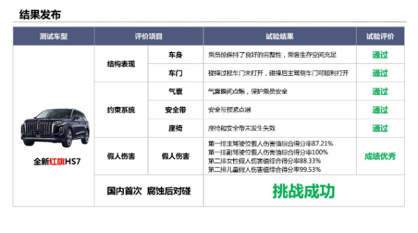 全新紅旗HS7成功通過(guò)腐蝕對(duì)碰挑戰(zhàn)并成為全國(guó)首個(gè)通過(guò)本次挑戰(zhàn)項(xiàng)目的車(chē)型,這一成績(jī)得益于一汽紅旗高品質(zhì)工藝。