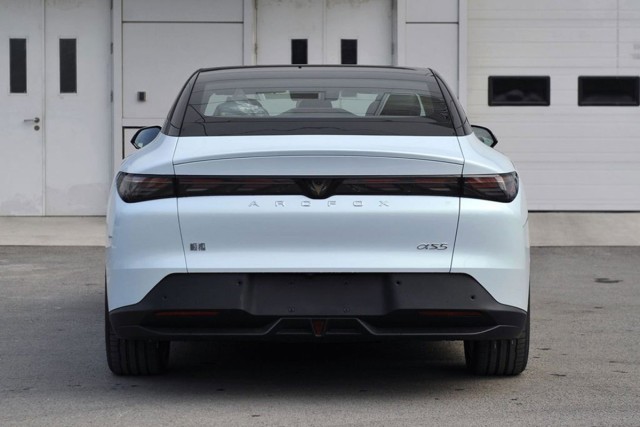 新車側面造型較為簡潔、流暢,略微向下傾斜的車頂線條結合隱藏式車門把手和熏黑輪眉組件時尚感較強。車尾部分,極狐阿爾法S5配備了造型修長的貫穿式LED尾燈組,搭配上翹的鴨尾式擾流板與底部寬大的后包圍組件在增強車尾視覺層次感的同時也極具辨識度。