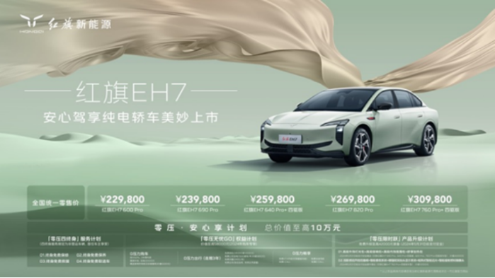 隨著環(huán)保意識的提升和新能源技術的飛速發(fā)展,新能源汽車成為全球汽車產(chǎn)業(yè)發(fā)展的新方向。紅旗新能源緊隨時代潮流,于3月20日在深圳舉辦“安心駕享·紅旗EH7上市發(fā)布會”,推出了其在新能源領域的里程碑產(chǎn)品——紅旗EH7,全國統(tǒng)一零售價為22.98萬-30.98萬元。這款車的推出,不僅增強了紅旗新能源的市場競爭力,也為汽車行業(yè)的綠色轉(zhuǎn)型和技術革新樹立了新典范。