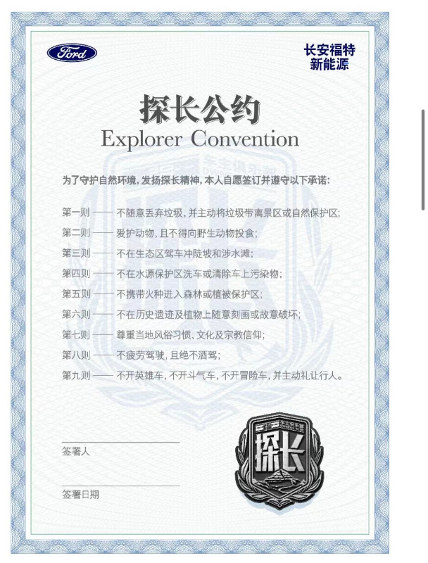 每一位支持踐行環(huán)保理念、熱衷公益的探險者車主皆可簽署《福探長公約》,成為一名“福探長”。在“走四方、見遠(yuǎn)山”探索大美的同時,心懷大愛踐行公益,書寫著屬于這個時代的探險者精神新篇章。