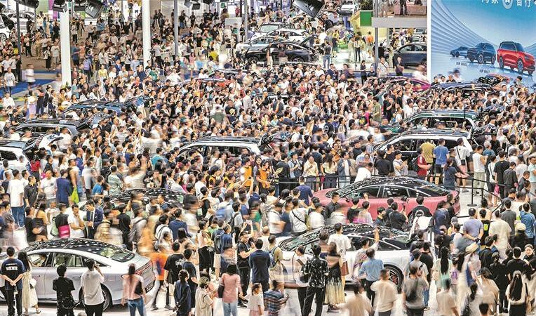 車展現(xiàn)場(chǎng)人潮涌動(dòng),前兩日迎來觀眾超30萬(wàn)人次。