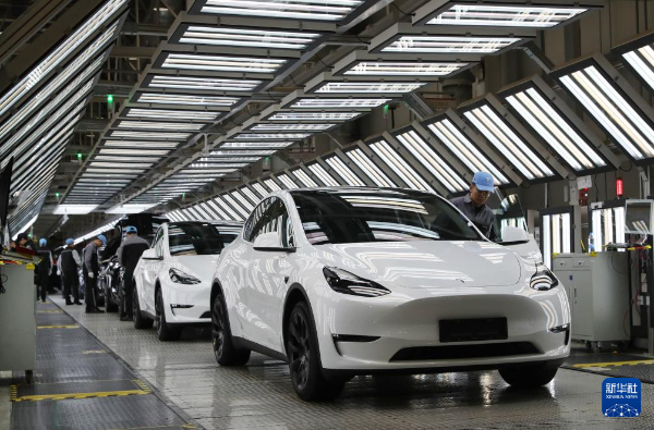 2023年12月22日,在特斯拉上海超級(jí)工廠內(nèi),工人在對(duì)出廠前的車輛進(jìn)行漆面及門窗檢測(cè)。新華社記者方喆攝