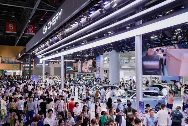 圖為2024成都國(guó)際車展上人頭攢動(dòng)的奇瑞展區(qū)