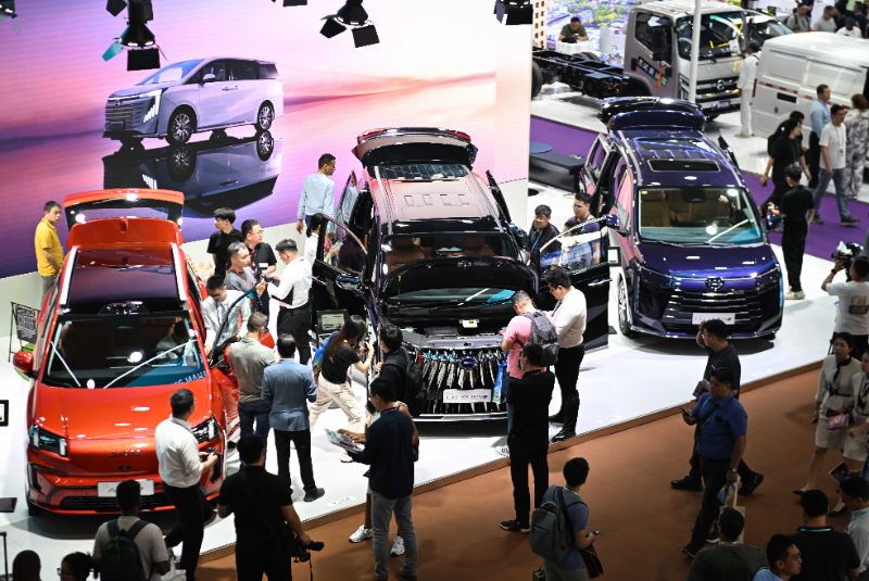 (資料圖)10月15日,第136屆廣交會上廣汽集團(tuán)的新能源汽車展臺吸引參觀者。新華社記者 鄧華 攝