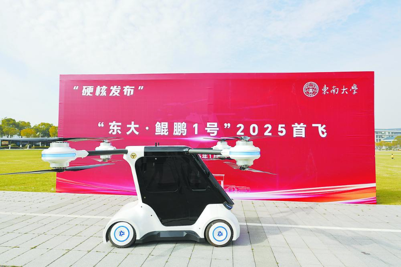 “這款陸空一體的飛行汽車以汽車為主要載體,而非當(dāng)下以無人機(jī)為主技術(shù)路線。它可以在地面行駛與飛行移動間隨意切換?!痹擁?xiàng)目負(fù)責(zé)人、東南大學(xué)機(jī)械工程學(xué)院教授殷國棟介紹,傳統(tǒng)電動垂直起降飛行器(eVTOL)不具備地面移動能力;而“東大·鯤鵬1號”為陸空一體構(gòu)型,兼具地面運(yùn)載裝備的快速移動與空中運(yùn)載裝備的靈活移動能力。同時(shí),“東大·鯤鵬1號”集多項(xiàng)創(chuàng)新技術(shù)于一身,突破了陸空一體化車身結(jié)構(gòu)拓?fù)鋬?yōu)化、動力系統(tǒng)全域冗余機(jī)制、多模態(tài)交互數(shù)字化座艙、跨域共用多維數(shù)據(jù)融合、陸空分布式電驅(qū)動系統(tǒng)以及雙阿克曼協(xié)同轉(zhuǎn)向等關(guān)鍵技術(shù)。