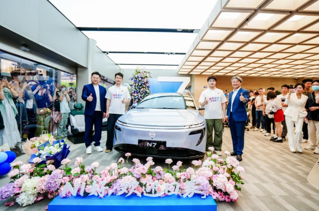 央廣網(wǎng)北京消息(記者姜鵬)5月15日,東風(fēng)日產(chǎn)在上海新能源品牌體驗中心舉行N7首批車主交付儀式,交車儀式現(xiàn)場,東風(fēng)日產(chǎn)高管與35位N7首批車主,及東風(fēng)日產(chǎn)N7產(chǎn)品體驗官、羽毛球男子雙打世界冠軍梁偉鏗、王昶共同參與。