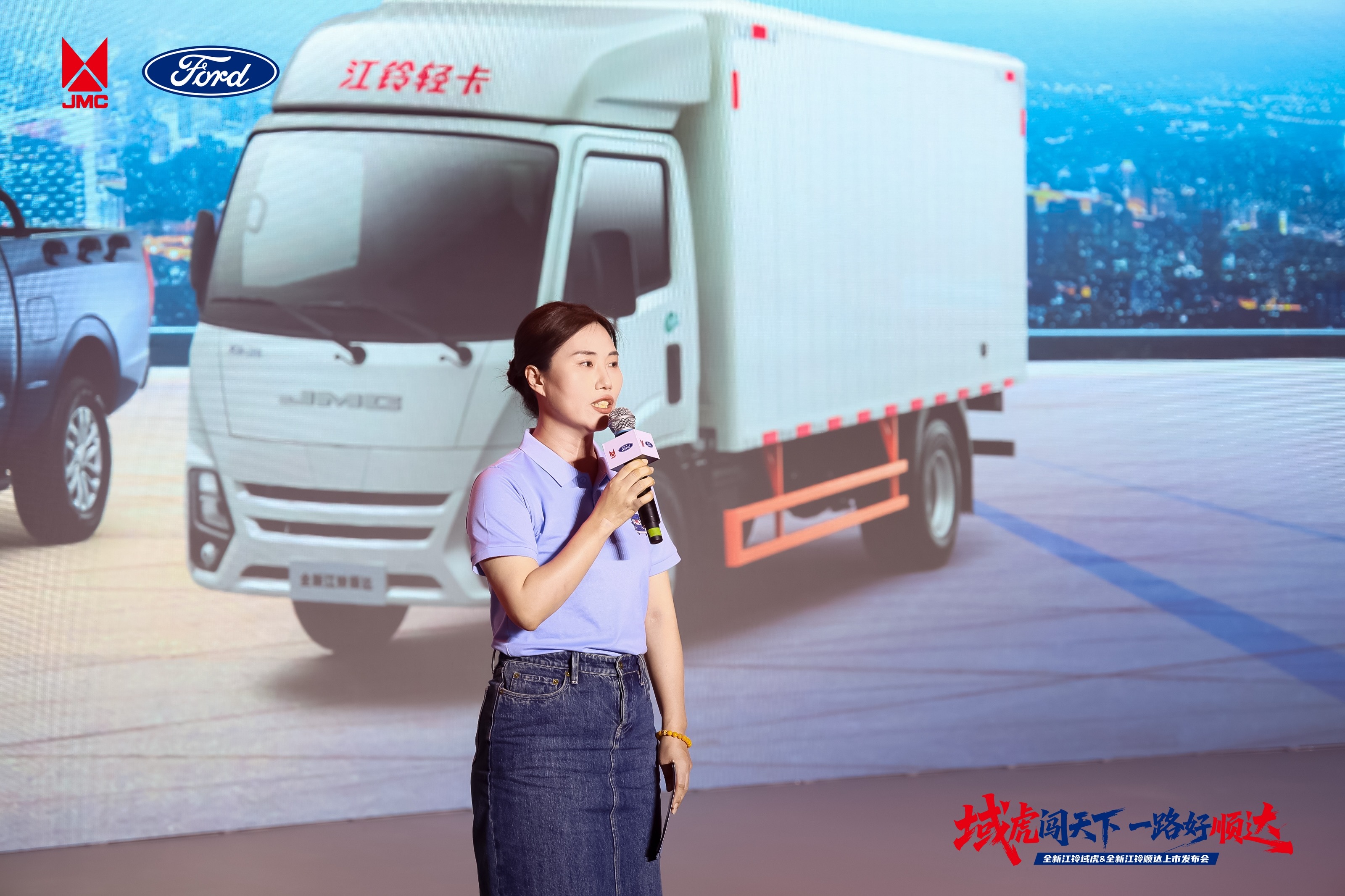 丁文敏駕駛全新江鈴順達登場,并作產(chǎn)品講解,同時公布了全新順達的官方指導價格及上市專屬政策。