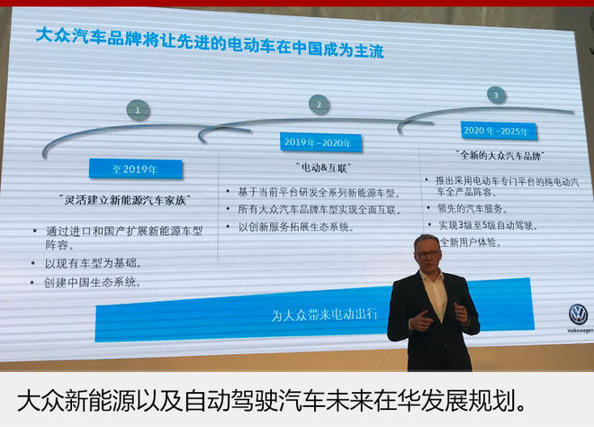 第三階段是在2020年-2025年之間,在中國市場投放專為電動車打造的MEB平臺,推出涵蓋進(jìn)口及國產(chǎn)插電式混合動力和純電動車型在內(nèi),共計(jì)超過20款全新車型。到那時,大眾汽車品牌將讓先進(jìn)的電動車成為中國的主流車型。