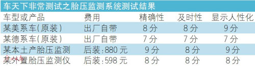 從此次測試來看,幾款胎壓監(jiān)測裝置都沒有“當機”的,只要胎壓出現(xiàn)問題都能精確地監(jiān)測到。大部分內(nèi)置胎壓監(jiān)測產(chǎn)品的反應時間在3秒左右,個別情況下會有4、5秒的情況,均在可接受范圍內(nèi)。在“放氣”測試中,車天下君留意到,這種清晰且功能強大的胎壓監(jiān)測顯示功能實現(xiàn)起來并不難,也成為當前新車車型的必備。