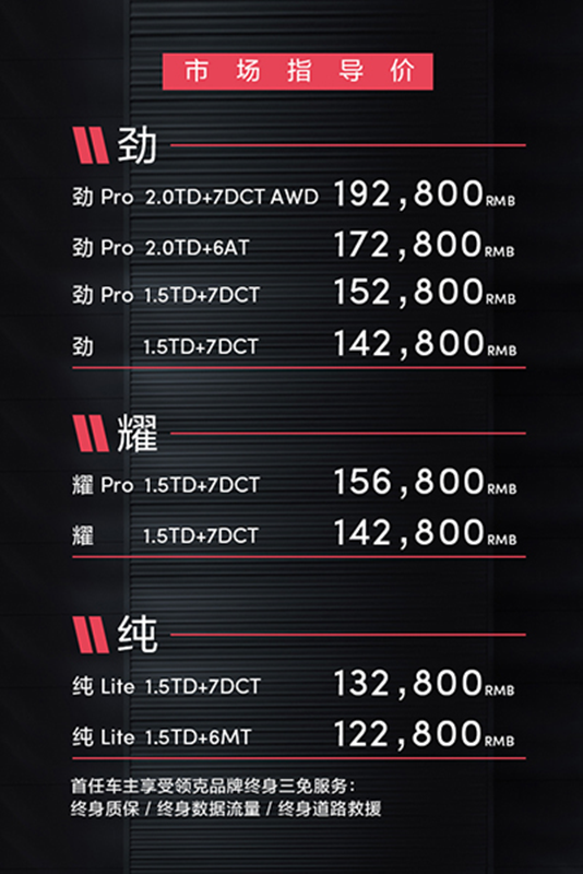 6月28日,領(lǐng)克02正式上市,售價(jià)區(qū)間為12.28-19.28萬元,共計(jì)8款車型。同時(shí),所有購買領(lǐng)克02的首任車主,都將享受到終身免費(fèi)質(zhì)保、終身免費(fèi)數(shù)據(jù)流量、終身免費(fèi)道路救援的三免服務(wù)。此外,領(lǐng)克01 PHEV也將于7月27日通過在線商城的方式對外銷售,共推出2款車型,補(bǔ)貼前預(yù)售價(jià)區(qū)間24-27萬元。