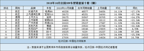 2018年SUV市場的快速冷卻,主要來自于自主品牌的滑落,而至年底,自主品牌也開始拼力自救。10月,自主SUV表現(xiàn)持續(xù)回暖,并共有六款車型入榜SUV銷量前十,但相比去年,表現(xiàn)仍不盡如人意。其中,哈弗H6再現(xiàn)“王者之風(fēng)”,其10月銷量突破4萬輛,再上一個(gè)臺(tái)階;接下來,榮威RX5表現(xiàn)非常突出,是榜單中環(huán)比增速最快的車型,排名也上升至歷史新高;此外,在沉淪多月后,長安旗下終于再次有車入榜。