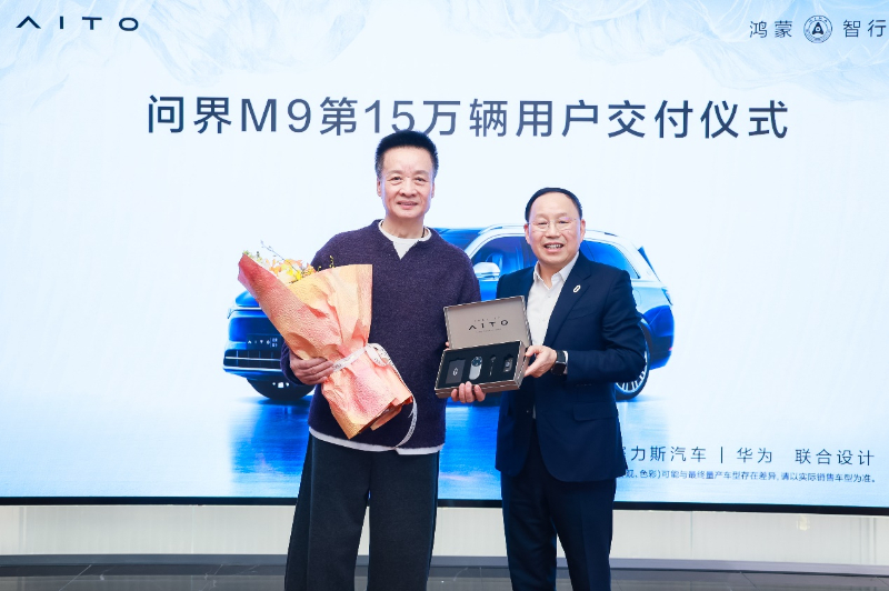 2025年1月8日,問界M9第15萬(wàn)輛用戶交付儀式在北京舉行。賽力斯集團(tuán)董事長(zhǎng)(創(chuàng)始人)張興海向著名男高音歌唱家、藝術(shù)家閻維文老師交付問界M9第15萬(wàn)輛新車鑰匙,共同見證了“世界級(jí)好車”問界M9開啟嶄新篇章的歷史性時(shí)刻。
