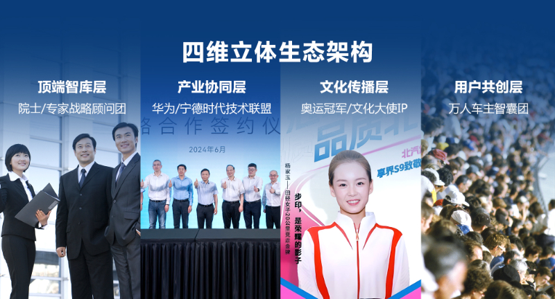 “品牌摯友計(jì)劃”是北汽集團(tuán)“品牌三年躍升行動(dòng)”的重要引擎,構(gòu)建一個(gè)“四維立體生態(tài)”:頂端智庫層,邀請(qǐng)?jiān)菏?、專家、?jīng)濟(jì)學(xué)家組成戰(zhàn)略顧問團(tuán);產(chǎn)業(yè)協(xié)同層,與華為、寧德時(shí)代等合作伙伴共建技術(shù)品牌聯(lián)盟;文化傳播層,攜手奧運(yùn)冠軍、文化名人打造"美好出行大使"IP;用戶共創(chuàng)層,建立萬人級(jí)車主智囊團(tuán)。除了外部資源,品牌摯友計(jì)劃還將逐步拓展至20位內(nèi)部管理者及300名KOE員工。