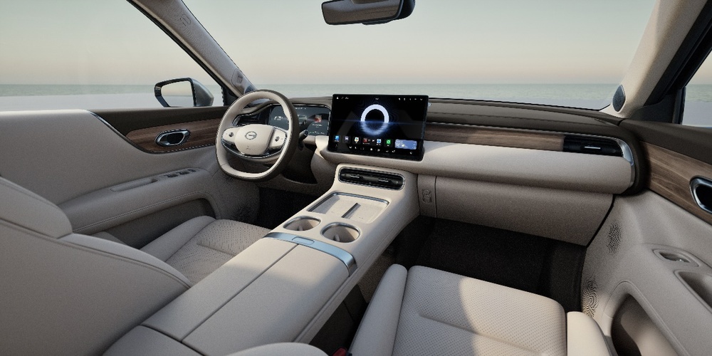 新車外觀設(shè)計以“一品麒麟”為核心,“五縱七橫”前格柵造型取自于瑞獸麒麟的麟片,輔以剛?cè)岵能嚿砭€條展現(xiàn)磅礴氣勢。內(nèi)飾運用北美百年原木構(gòu)筑潑墨山水意境,使車內(nèi)自成一方天地。