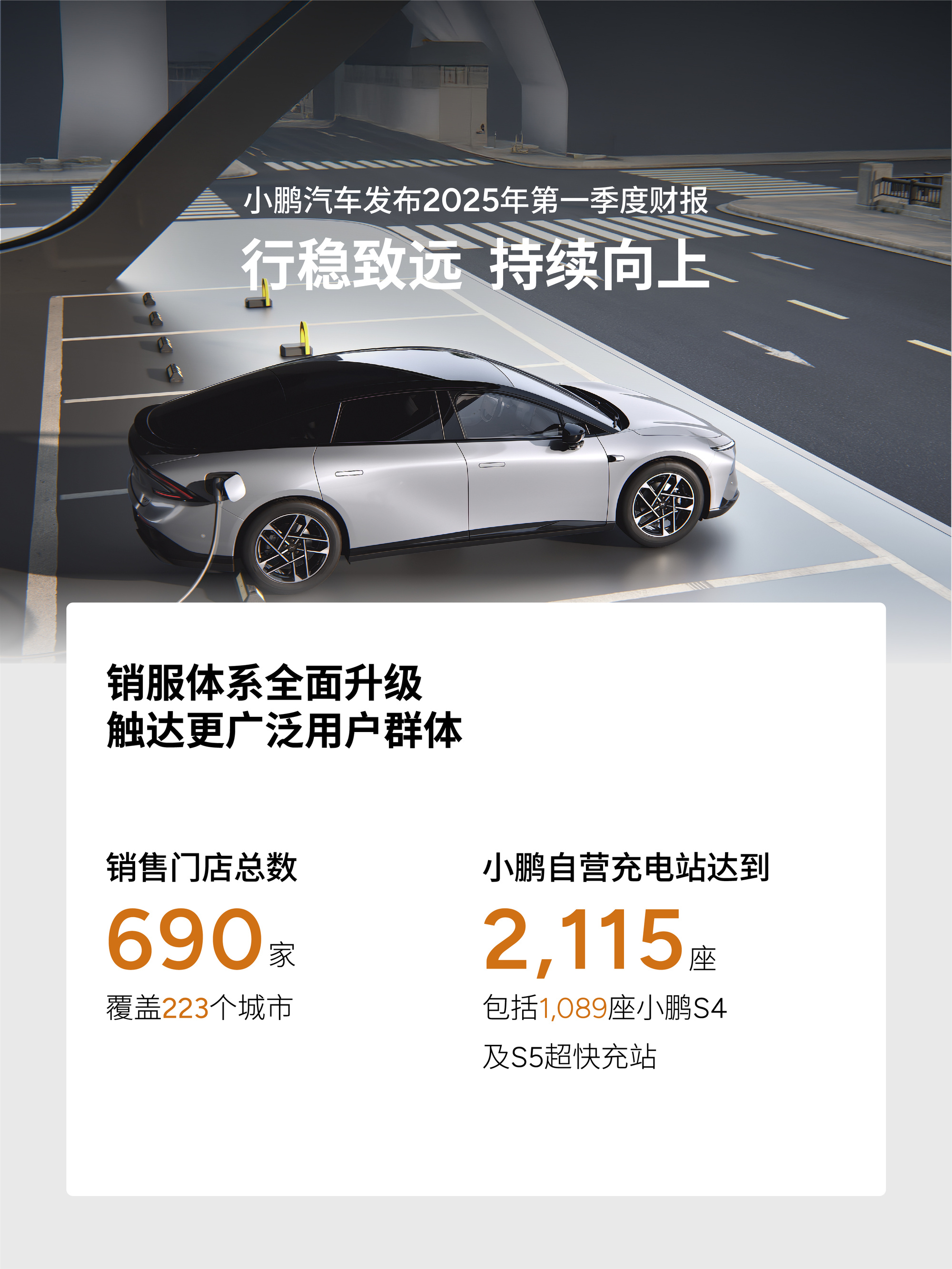 為了支持銷售,小鵬汽車正在加快銷售與充電網(wǎng)絡布局。截至3月31日,小鵬汽車擁有共計690家門店,覆蓋223座城市;自營充電站網(wǎng)絡進一步擴展至2115座充電站,包括1089座小鵬S4及S5超快充站。