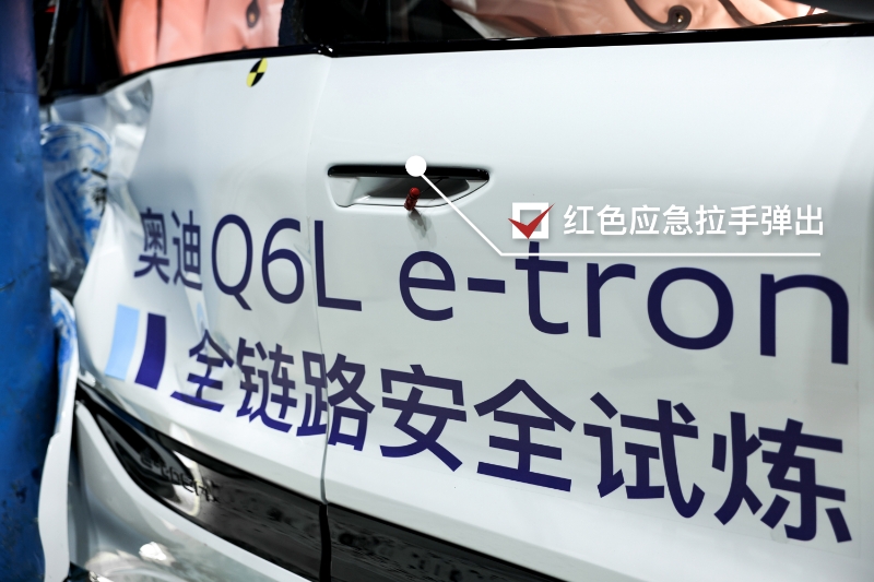 結(jié)果顯示,一汽奧迪Q6L e-tron車身結(jié)構(gòu)完整,A、B、C、D柱均未發(fā)生結(jié)構(gòu)性失效,兩次擠壓下乘員艙依然保持足夠的生存空間。安全帶正常預(yù)緊點爆,側(cè)氣囊、側(cè)氣簾及中央氣囊正常展開,全車假人傷害值均處于優(yōu)秀水平。電池組在遭遇“夾心式?jīng)_擊”后幾乎無變形、無位移,經(jīng)受住幾何形變與短路風(fēng)險雙重考驗,未發(fā)生冒煙、起火、爆炸或電解液泄漏。高壓系統(tǒng)在毫秒級內(nèi)完成高壓斷電,有效避免短路造成熱失控風(fēng)險。通過科學(xué)的走線,有效的結(jié)構(gòu)保護,以及冗余的功能設(shè)計,保障極限場景下低壓電正常工作。半隱藏式車門把手的紅色應(yīng)急拉手正常彈出,前排車門可正常打開,電動座椅可調(diào)節(jié);車窗自動下降,保障車內(nèi)空氣流動。碰撞后雙閃及時開啟,E-CALL及時啟動并接通人工客服。從堅若磐石的乘員艙結(jié)構(gòu),到周全可靠的碰撞后救援機制等,每一個安全細節(jié)都交出了高分答卷。
