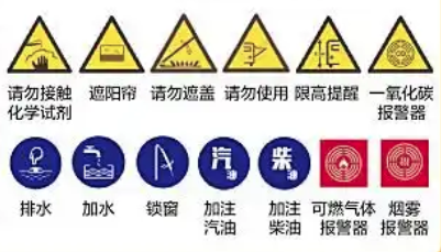 滅火器標(biāo)志必須貼在車(chē)門(mén)旁或廚房附近等滅火器存放處,要求標(biāo)志尺寸不小于10厘米見(jiàn)方,以確保在光線(xiàn)較暗的情況下也能快速找到;