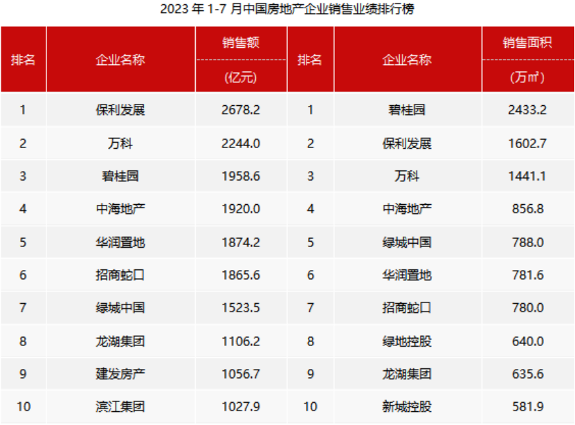 從企業(yè)表現(xiàn)來看,克而瑞報(bào)告顯示,2023年7月有逾8成百強(qiáng)房企單月業(yè)績環(huán)比降低,同比降低的企業(yè)在也占到近7成。具體來看,7月有超半數(shù)百強(qiáng)房企的單月業(yè)績同比降幅大于30%,其中36家企業(yè)同比降幅超過50%。但同時(shí),也有一些企業(yè)的業(yè)績表現(xiàn)相對突出。如越秀地產(chǎn)、保利置業(yè)、華僑城、聯(lián)發(fā)集團(tuán)、大華集團(tuán)等房企7月單月業(yè)績?nèi)詫?shí)現(xiàn)同比增長。