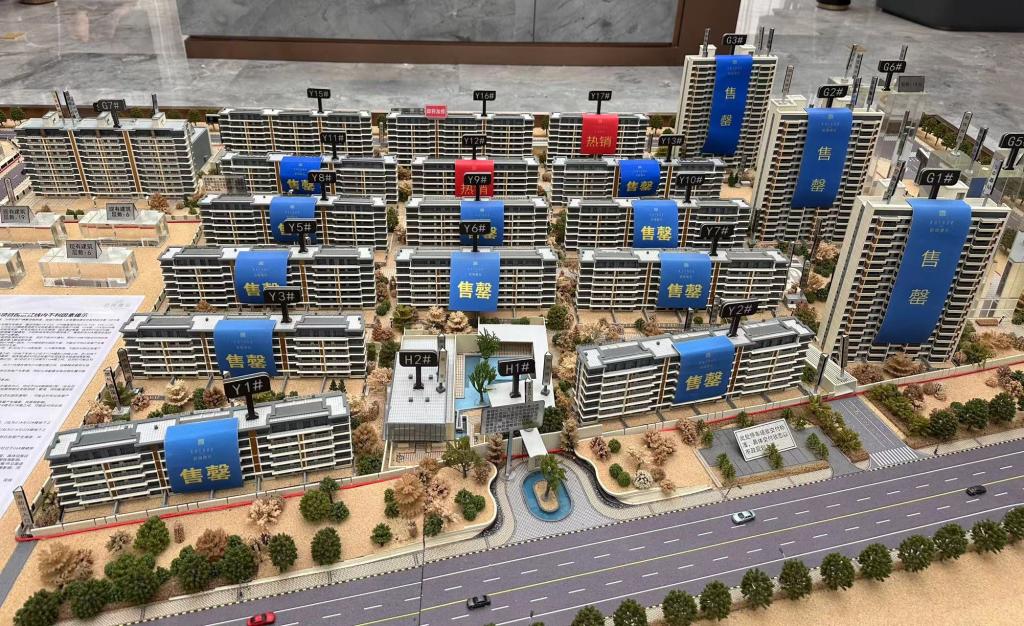 沈陽一處樓盤,售樓處的沙盤顯示大多數樓宇已售罄。新華社記者鄒明仲 攝