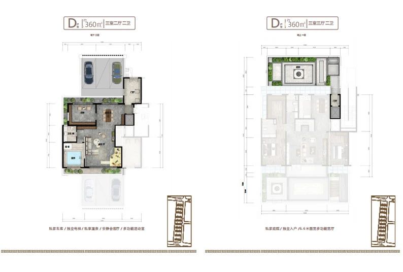地下室設(shè)計(jì)不同于傳統(tǒng)地下室,只能為儲(chǔ)藏室使用,而小區(qū)地下室層高和地上建筑面積層高一致,達(dá)到了3.2米,沒有空間壓抑感,在南北庭院都設(shè)有1.2米的通風(fēng)采光井,室內(nèi)鋪設(shè)地暖及溫泉管道,上下水和衛(wèi)生間,私密性特強(qiáng),可以設(shè)計(jì)桑拿房,健身房,保姆間,洗衣房,酒窖及休閑娛樂等多功能區(qū)域,對于鄰居既不會(huì)產(chǎn)生噪音干擾,更不會(huì)打擾到家人的休息,在提高了生活品質(zhì)的同時(shí)也不會(huì)由空間局促感,地下室可以直通地下私家車庫,車庫層高4.2米,寬約7-10米,至少可以容納家用汽車三輛。