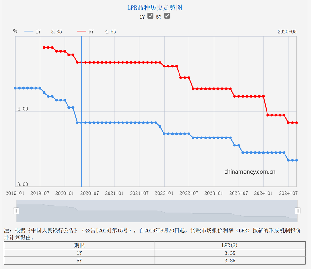 2024年9月20日,全國(guó)銀行間同業(yè)拆借中心公布新版LPR報(bào)價(jià):1年期品種報(bào)3.35%,上月為3.35%;5年期以上品種報(bào)3.85%,上月為3.85%。數(shù)據(jù)顯示,最新LPR維持不變,這使得市場(chǎng)預(yù)期落空。